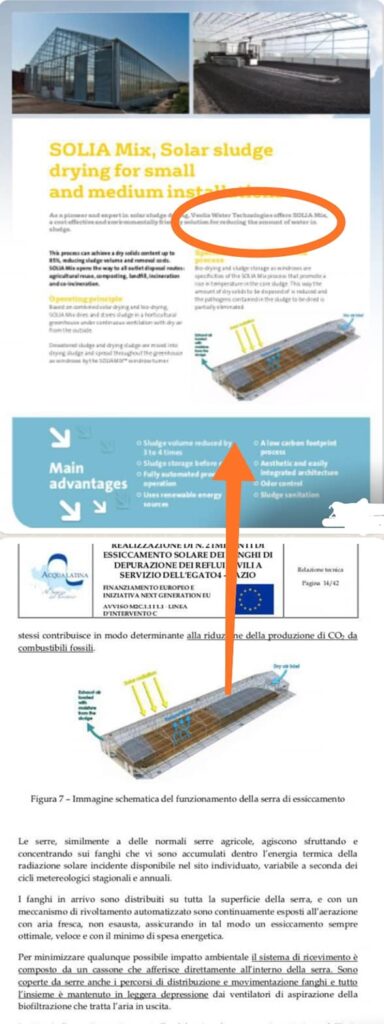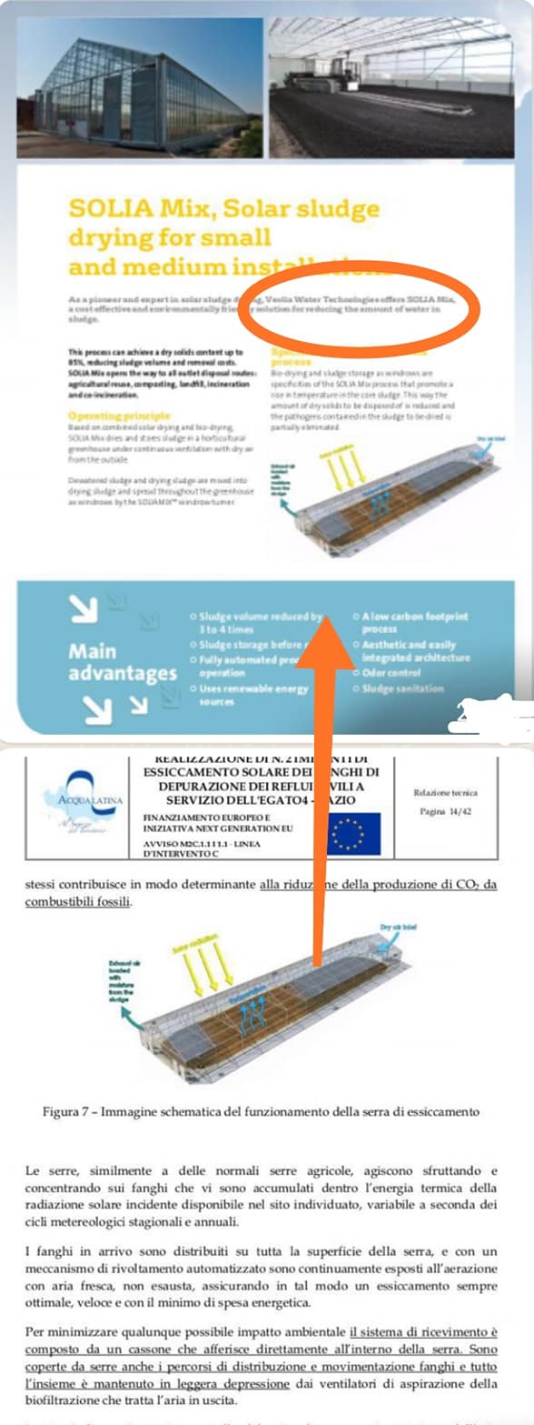 Molto dettagliato è il progetto tecnico che Acqualatina porterà in approvazione il prossimo martedì 8 febbraio, in cui rusultano ben descritti e graficizzati gli impianti di essiccazione solare da realizzare. Certo la stessa tecnologia, la SOLIA MIX, è prodotta dalla VEOLIA Water Technologies (come da foto allegate), la stessa VEOLIA che è la parte privata di Acqualatina.