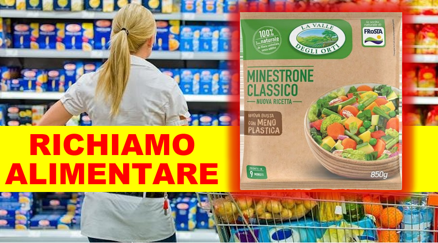 Possibile presenza di vetro in un minestrone. Nuovo Richiamo Alimentare dal Ministero – Nuovo richiamo alimentare per rischio FISICO sul sito del Ministero della Salute in data 30/04/2024 (il richiamo è datato 26/04/2024) e riguarda un minestrone. Denominazione di vendita: MINESTRONE CLASSICO 850gr , Marchio del prodotto: LA VALLE DEGLI ORTI, Nome o ragione sociale dell’OSA a nome del quale il prodotto è commercializzato: FROSTA SRL. Lotto di Produzione: L4043F10, data di scadenza o termine minimo di conservazione: 08/2025, Descrizione peso/volume unità di vendita: 850 g, Nome del produttore: FROSTA. Marchio di identificazione dello stabilimento/del produttore: LA VALLE DEGLI – ORTI FROSTA, Sede dello stabilimento: LOMMATZSCH, MESSAER STRASSE 3-5 GERMANIA.