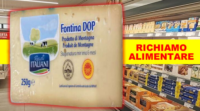 Richiamo Alimentare per un formaggio per possibile presenza di E. coli STEC. Ecco il lotto – Nuovo richiamo alimentare per rischio microbiologico pubblicato sul sito del Ministero della Salute in data 10/03/2023 e riguarda un formaggio. Denominazione di vendita: FONTINA DOP 250g Pascoli Italiani, Marchio del prodotto: FONTINA DOP, Nome o ragione sociale dell’OSA a nome del quale il prodotto è commercializzato: Eurospin Italia spa, Lotto di Produzione: C037105286, data di scadenza o termine minimo di conservazione: 10/04/2023, Descrizione peso/volume unità di vendita: Confezioni di porzionato da 250 gr, Marchio di identificazione dello stabilimento/del produttore: IT 02 2 CE, Nome del produttore: Località La Croix Noire – Rue Croix Noire, 19 – 11020 Saint Christophe (Aosta).