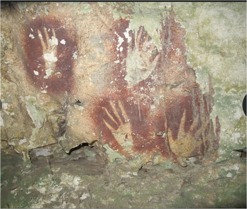 Lo stencil rosso, ormai sbiadito, ritrae il profilo di una mano con dita affusolate che danno l’effetto di un artiglio, forse a simboleggiare un legame profondo tra uomini e animali. Questo motivo riecheggia altre rappresentazioni dell’isola, come figure ibride tra umani e creature, superando il record precedente di un maiale stilizzato vecchio 45.500 anni sempre a Sulawesi.
