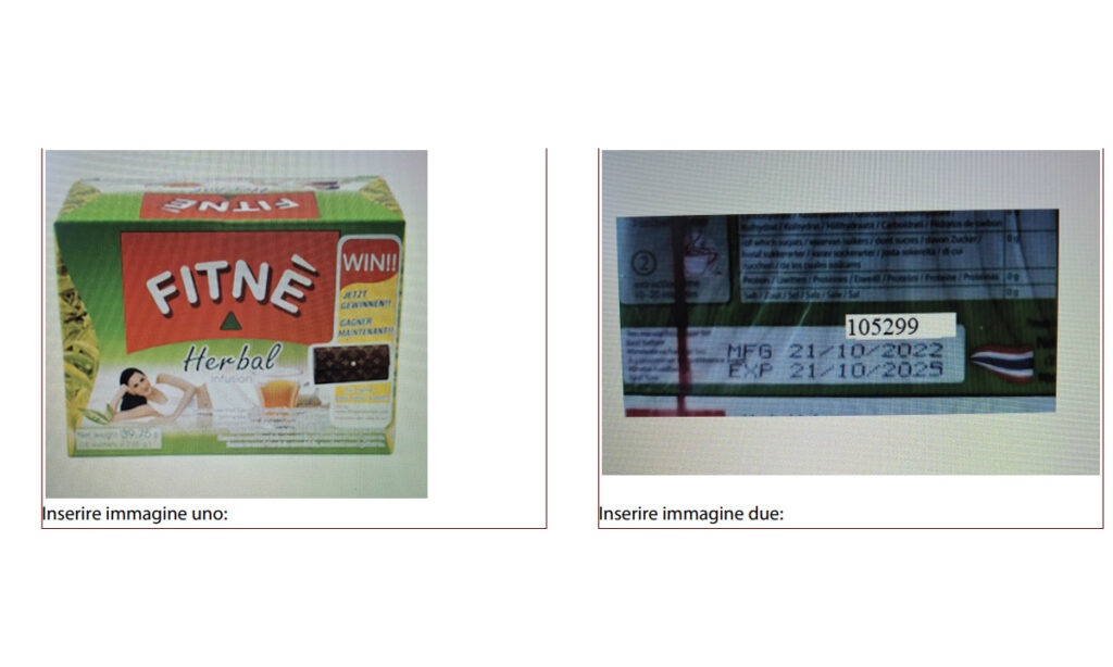 Tisana con Migrazione MOAH – Nuovo Richiamo Alimentare dal Ministero della Salute. Il lotto – Nuovo richiamo alimentare per rischio CHIMICO sul sito del Ministero della Salute in data 10/01/2025 (il richiamo è datato 17/12/2024) e riguarda una tisana. Denominazione di vendita: FITNE INFUSION BOX (GREEN) – TISANA DI SENNA (12x) 6x40g. Marchio del prodotto: FITNE’, Nome o ragione sociale dell’OSA a nome del quale il prodotto è commercializzato: BEAGLEY COPPERMAN B.V., Steenwijklaan 2, De Kwakel, Paesi Bassi. Lotto di Produzione: LOT-105299, data di scadenza o termine minimo di conservazione: 21-10-2025, Descrizione peso/volume unità di vendita: 40 g, Nome del produttore: FITNE’. Marchio di identificazione dello stabilimento/del produttore: -, Sede dello stabilimento: Thailandia.