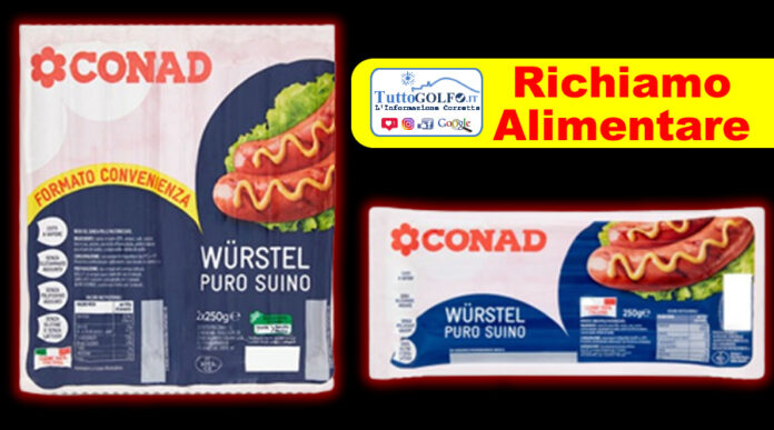 CONAD attraverso un comunicato ha dichiarato: “Informiamo i clienti del richiamo in via precauzionale dei seguenti lotti di produzione dei prodotti: WURSTEL PURO SUINO 2X250G CONAD e WURSTEL PURO SUINO 250G CONAD, Lotto 20/10/2022, Scadenza 20/10/2022, cod. EAN 8003170086661, prodotto per Conad da Grandi Salumifici Italiani Spa. Nei lotti è stata riscontrata una non conformità (possibile presenza di piccoli frammenti di plastica). Al fine di scongiurare qualsiasi possibile rischio per la salute, i clienti che fossero in possesso del prodotto appartenente al medesimo lotto sono invitati a riportarlo al punto di vendita Conad dove è stato acquistato, che provvederà alla sostituzione con altro prodotto o al rimborso. Ci scusiamo per il disagio arrecato.”