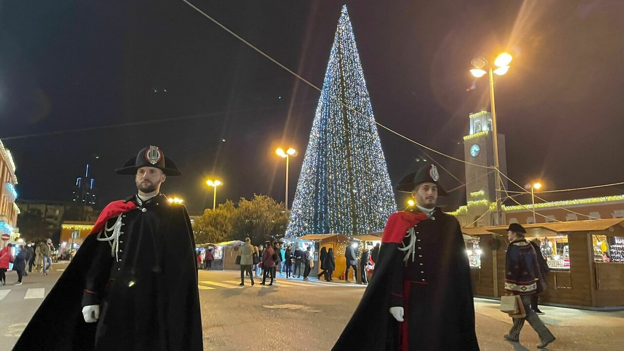 I militari, eleganti e perfettamente integrati con lo scenario natalizio del centro di