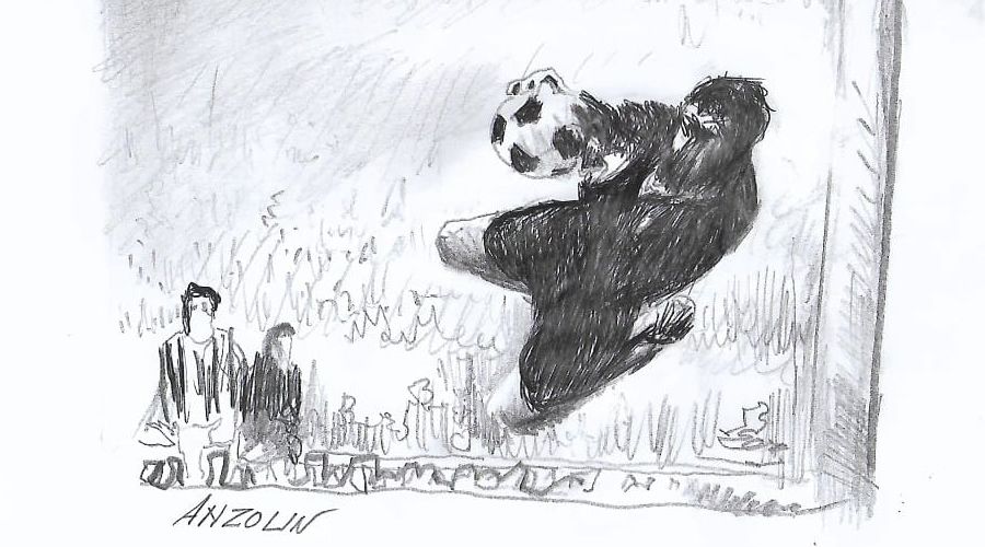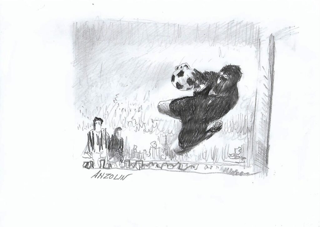 Roberto Anzolin e la sua maglia nera con scollo bianco – “2 novembre 1960. Newcastle, città dove le ciminiere anneriscono il cielo e scura come la fuliggine. Gli azzurri Under 23 se la giocano contro i coetanei inglesi, in un match duro. In porta, per l’Italia, un giovane Roberto Anzolin.