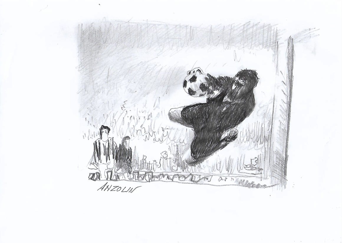 Malgrado le proteste degli azzurrini, l’arbitro belga Van Nussel convalida il gol: quando è stato caricato, il portiere aveva i piedi sul terreno di gioco e il pallone tra le mani ed è questo che il regolamento esige! Le premesse della carriera di Anzolin sono tutte all’insegna del sacrificio e delle difficoltà ma anche della classe.