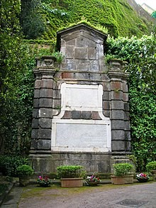 Nel parco è presente il cenotafio di Virgilio, un colombario di età romana, tradizionalmente ritenuto la tomba del poeta e inoltre ospita, dal 22 febbraio 1939, la tomba di Giacomo Leopardi, morto a Napoli e sepolto inizialmente nella vecchia Chiesa poi demolita e ricostruita di San Vitale Martire a Fuorigrotta. Salendo il viale si incontra subito sulla sinistra un’edicola in piperno che mostra due lapidi fatte porre nel 1668 dal viceré Pietro Antonio d’Aragona.