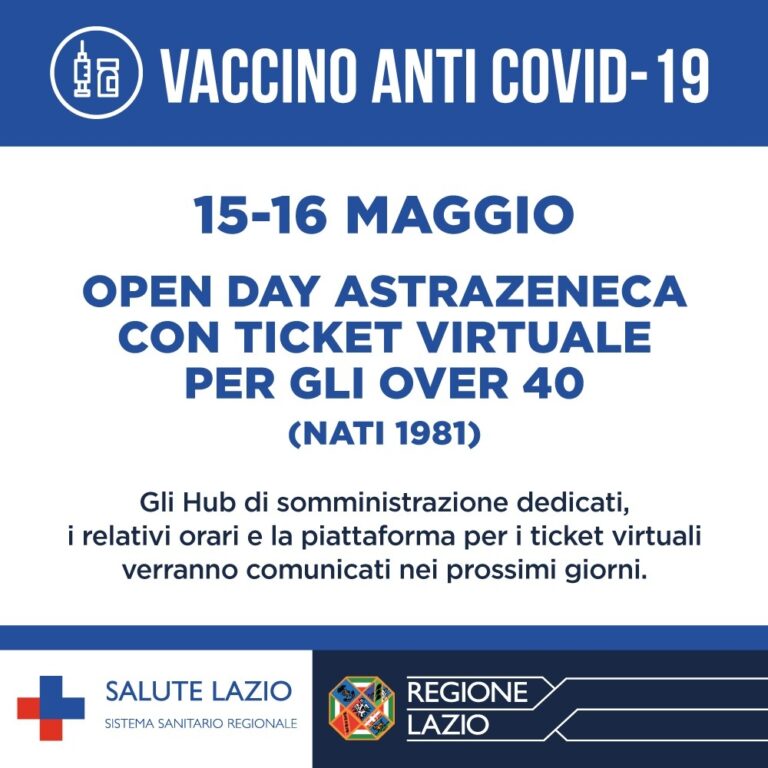 REGIONE LAZIO – Vaccinazione per la fascia d’età 47 – 44 anni (nati 1974 – 1977)