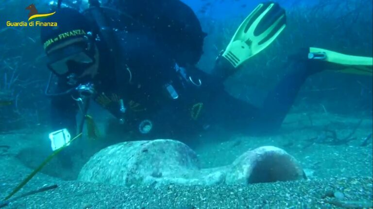 FOTO – RIPORTATA ALLA LUCE UN’ANFORA A VENTOTENE DALLA GUARDIA DI FINANZA